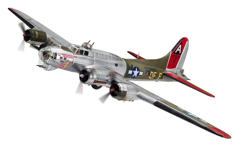 As one of the most popular die-cast model ranges in our hobby, the Aviation Archive series again features prominently in the latest range announcement and has already started receiving plenty of pre-order activity. One model tooling making a welcome return to the range is the Boeing B-17G Flying Fortress and the latest release in this series is something of a classic. The 1/72nd scale Corgi B-17 first appeared in the range back in 2002 and was only the second four engined heavy bomber to be produced, following the release of the Lancaster in the previous year. The first model released presented the die-cast collector with a scale representation of the famous Flying Fortress ‘Memphis Belle’ and from this initial release, the B-17 has always been amongst the most popular models in the Aviation Archive range. The latest incarnation of this magnificent tooling is AA33316 ‘Little Miss Mischief’ and has to be considered one of the most interesting US bombers of the Second World War. It also helps to illustrate the dangers faced by USAAF bomber crews engaged on daylight raids over occupied Europe and the skill and ingenuity of grown crews who fought their own battle to keep these mighty aircraft serviceable.
