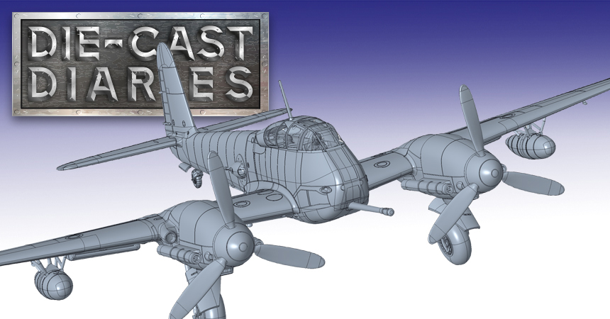 We have a bumper selection of new Corgi model project updates for your delectation in this latest edition of DCD, with more model image exclusives to share with you than any self-respecting die-cast collector should be expected to sift their way through. As it’s been quite some time since the project announcement was made, we though it was high time that Aviation Archive collectors should be given an update on the progress being made with our new 1/72nd scale Messerschmitt Me 410 Hornisse tooling, which is already looking like being a stunning addition to the range. Not only do we have CAD screenshot imagery for your enjoyment, but we also have image exclusives showing the prototype sample model produced from the Me 410 design files, allowing us to confidently clear this project for take-off!
