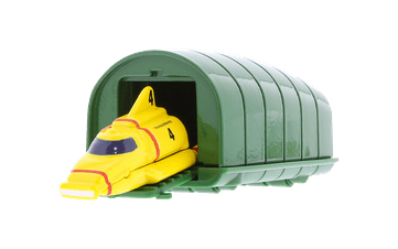 Thunderbird 4, piloted by aquanaut Gordon Tracy, is a 30 feet long underwater and sea surface craft. Although much smaller than the other Thunderbirds vehicles and with a limited range, TB4 nonetheless plays a vital role in any underwater rescue operations.